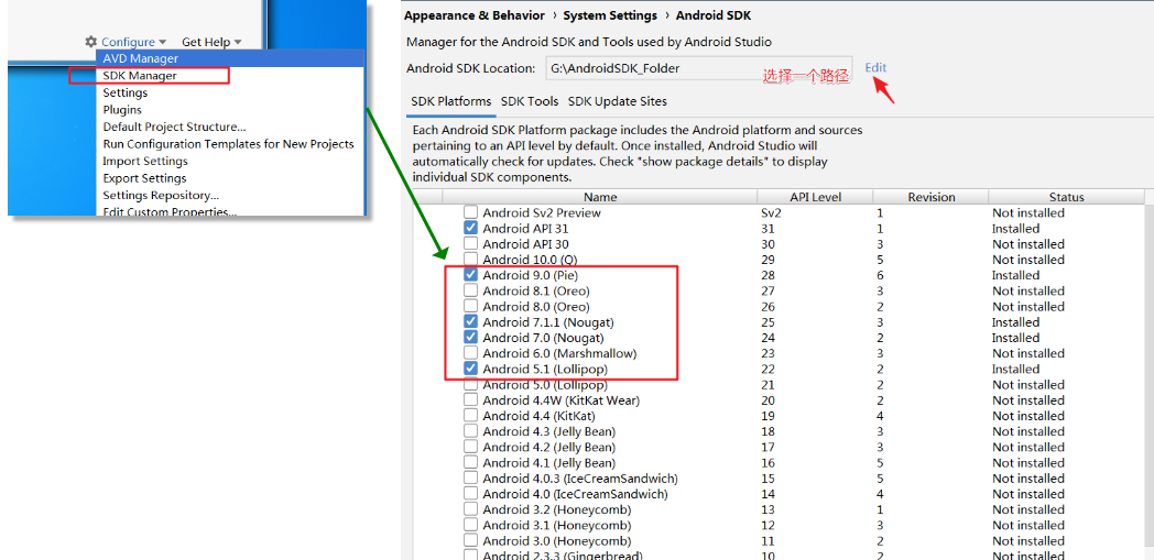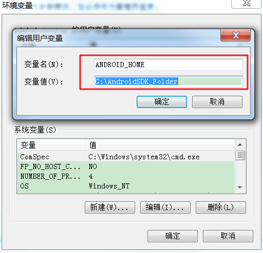 配置名称为 ANDROID_HOME 的环境变量,然后在 Path 中增加如下环境变量值。