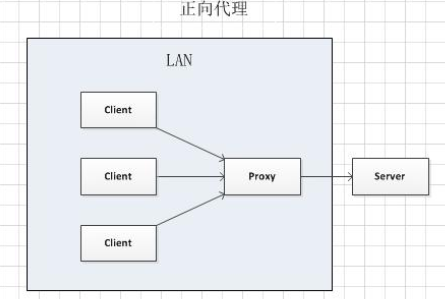 上述这样的代理模式称为正向代理,正向代理最大的特点是客户端非常明确要访问的服务器地址;服务器只清楚请求来自哪个代理服务器,而不清楚来自哪个具体的客户端;正向代理模式屏蔽或者隐藏了真实客户端信息。