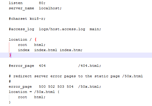 下面的error_page是代表错误的页面,这里我们暂时不用,先不管它。