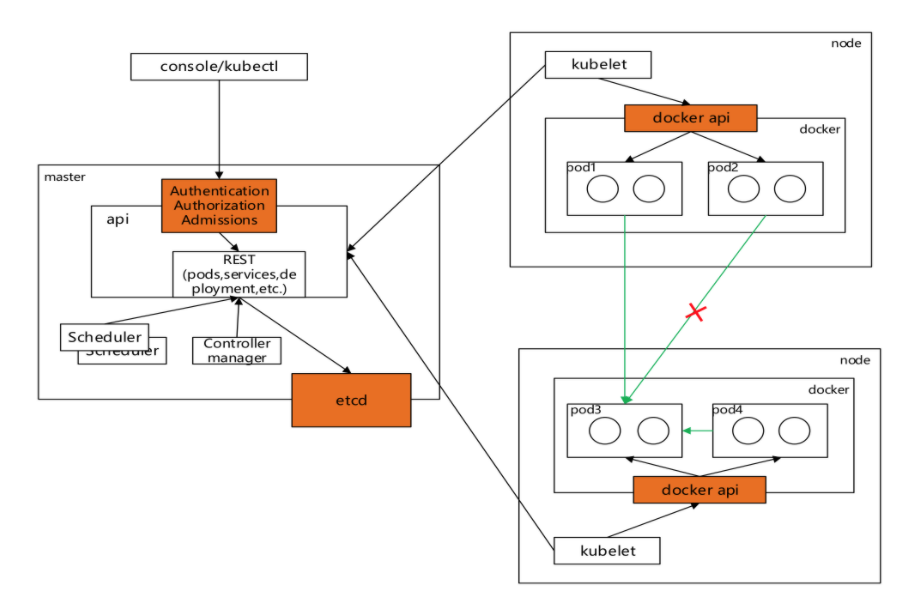 1) Node,一个专用鉴权组件,根据调度到kubelet上运行的Pod为kubelet授予权限。