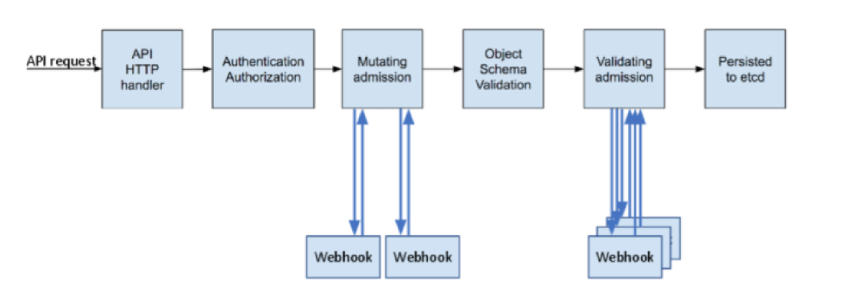 Admission Controller 实现了对于Kubernetes集群的准入控制,如下图所示,Admission Controller以插件的形式内置于Kubernetes APIServer,在APIServer对请求的处理链路中发挥作用。