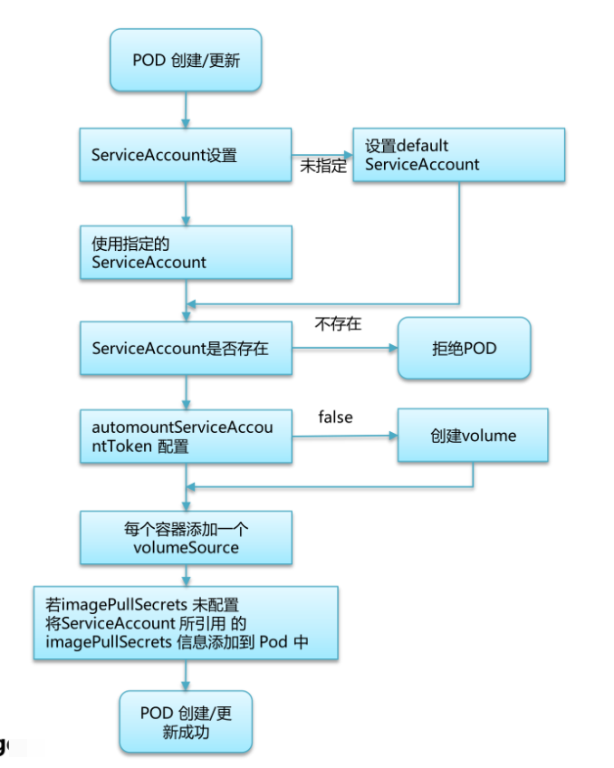 2) 校验指定的ServiceAccount是否存在:否则拒绝该Pod。
