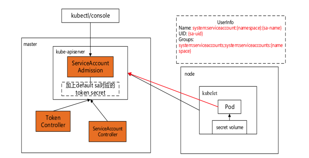 1) 检测ServiceAccount的创建并创建相应的Secret以允许访问API。