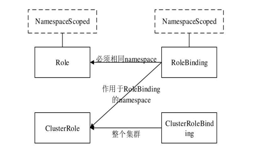 c. Role、RoleBinding、ClusterRole和ClusterRoleBinding的关系如下图所示: