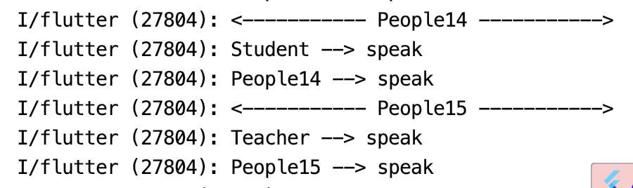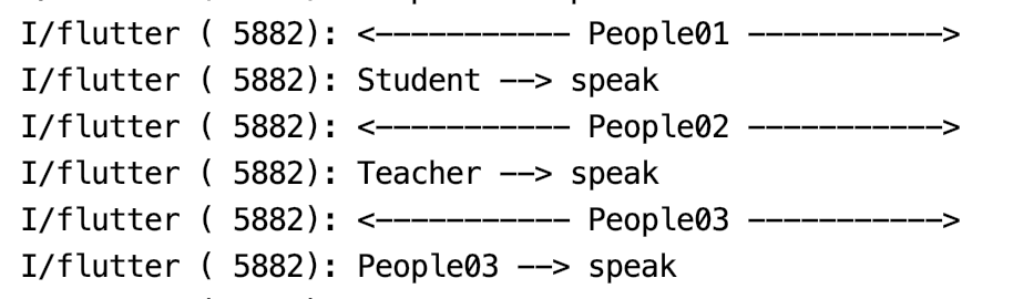 class Student extends People { void speak() { print('Student --> speak'); } }