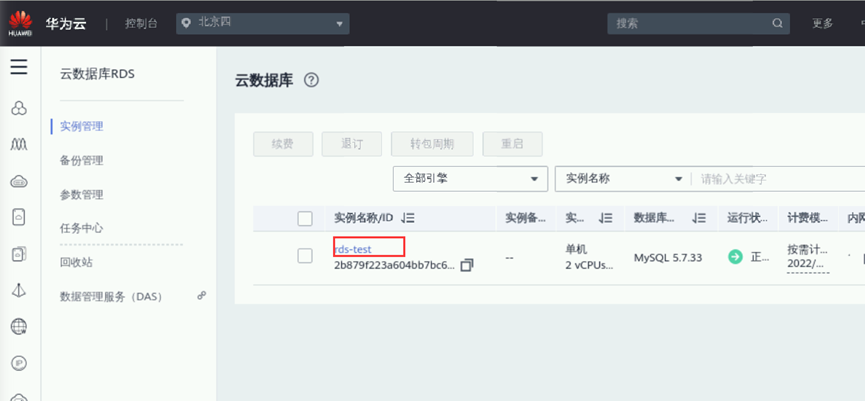 点击所创建数据库实例名称,进入数据库详情,可查看数据详情。