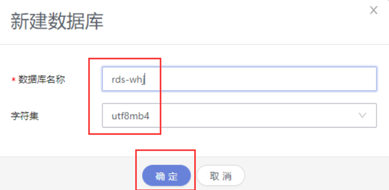 点击新建数据库,填写数据库名称,点击“确定”。① 数据库名称:自定义② 字符集:默认