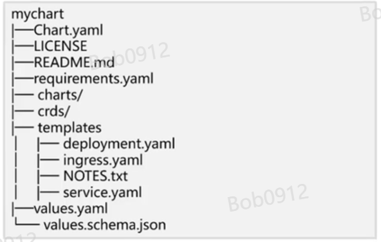 • Chart:创建Kubernetes应用程序所需的一组信息。Chart目录:可选,chart依赖的其他chart。