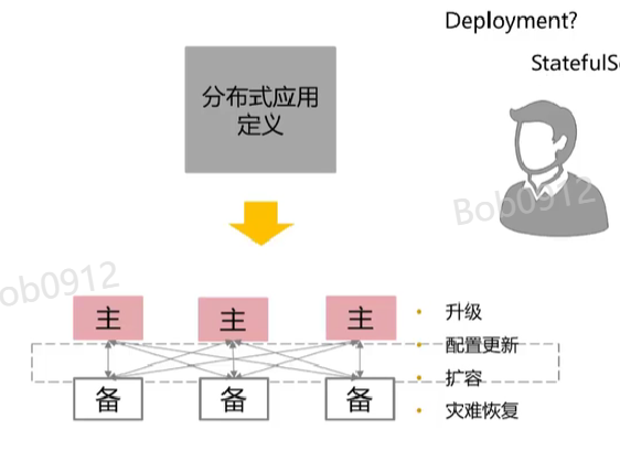 以分布式系统为代表的有状态应用,并不像Web应用一样“开箱即用”,这些系统需要特定应用领域的知识才能扩展、升级和重新配置,同时防止数据丢失或者不可用。