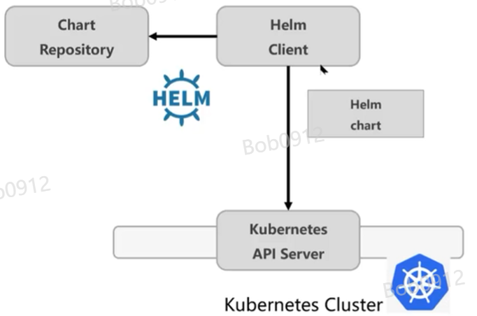 Helm Client:终端用户的命令行仓库,可以用命令本地化初始一个包的框架,再往里面塞一些需要的模板,最后组合打包成一个业务包,然后去发布。