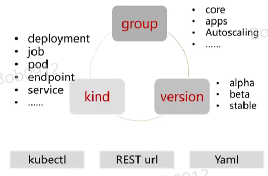 标准的API定义:/apis/{group}/{version}/namespace/{namespace}/{kind}${name}