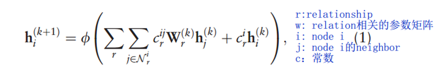 - 每个节点的计算:根据不同的edge类型,分别计算并加和不同类型的节点(邻居)