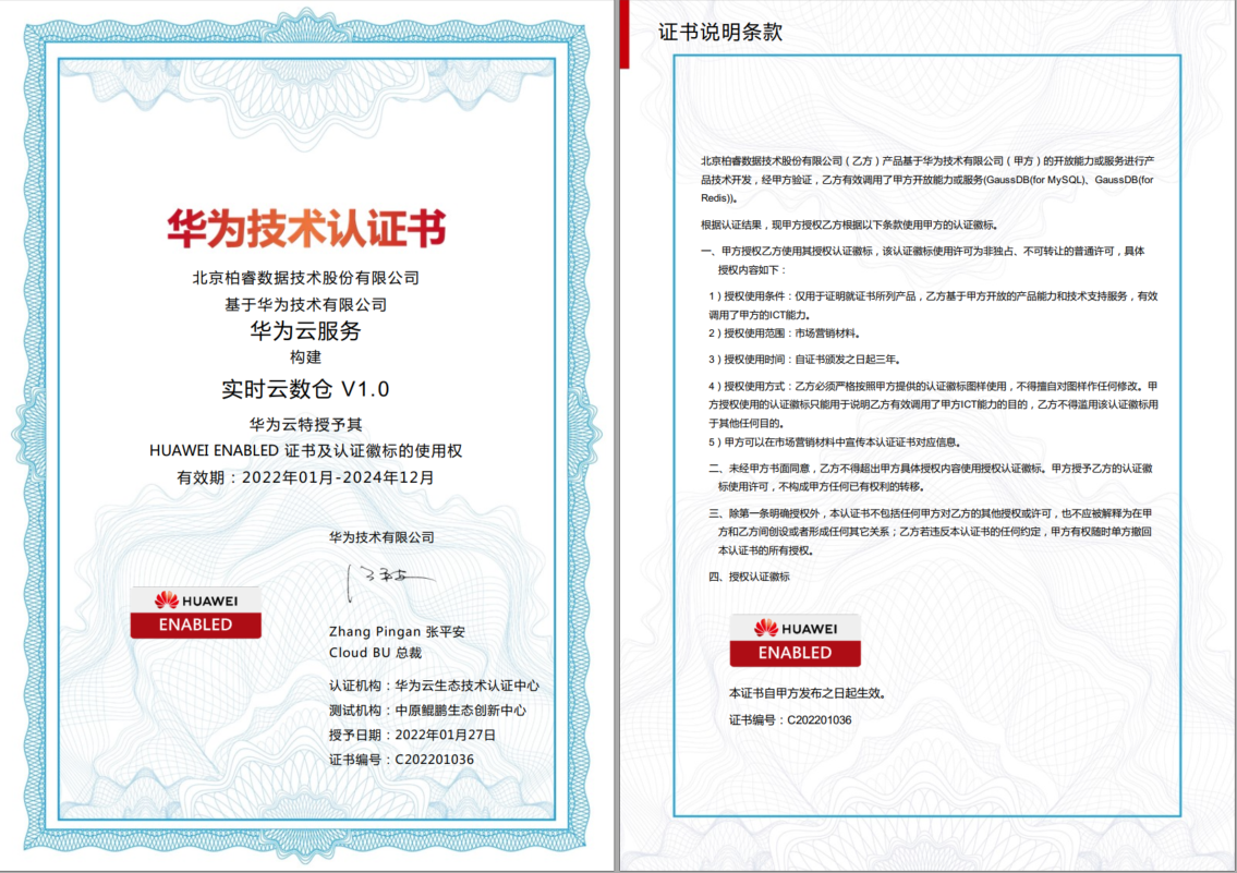 柏睿数据与中原鲲鹏创新中心联手,结合华为云GaussDB数据库,共同完成实时云数仓系统在华为云上的方案构建。双方技术团队针对系统功能、性能、安全方面进行了多场景化测试,并获得沃土云创Enabled认证。