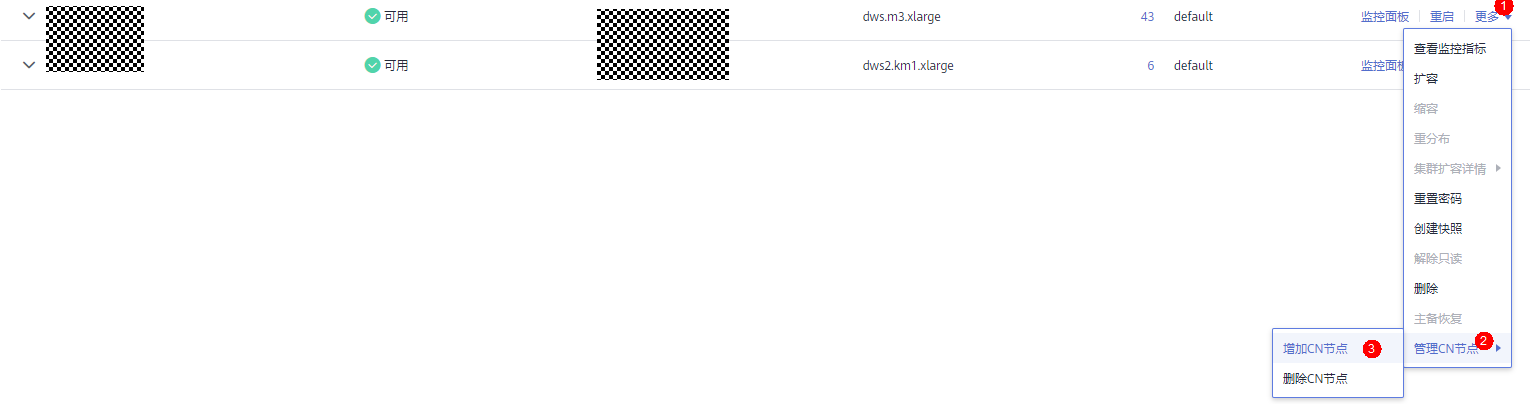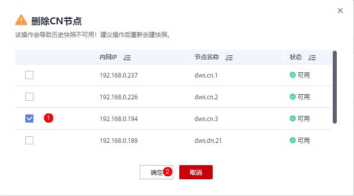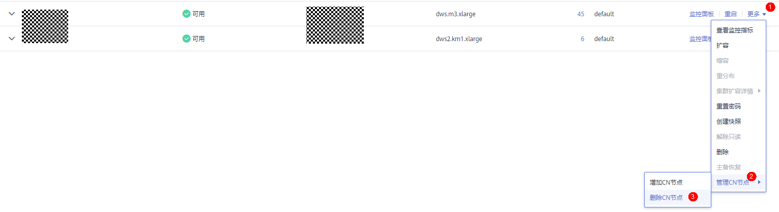 如果发现集群部分CN故障,或存在亚健康状态,可以选择手动删除故障CN,具体操作流程如下。手动删除CN耗时固定,1分钟左右。