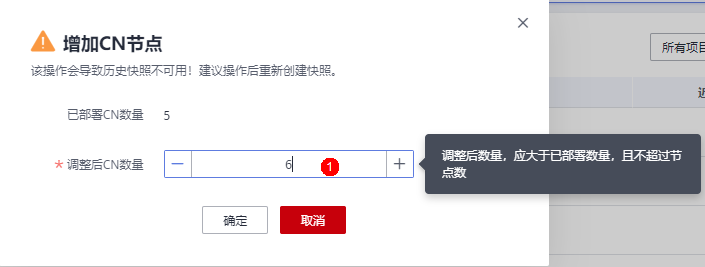 集群下发后,如果由于业务并发度高导致CN不够用,可以在线添加CN,具体操作如下图所示。增加CN耗时与用户表数量有关,大概10分钟左右,增加CN过程中间有一段时间会锁集群,阻塞DDL语句执行。