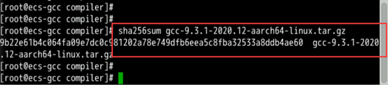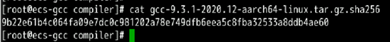 将gcc-9.3.1-2020.12-aarch64-linux.tar.gz生成的哈希值与gcc-9.3.1-2020.12-aarch64-linux.tar.gz.sha256文件内容进行比较,一致则表示下载的软件包与网站发行的软件包一致。