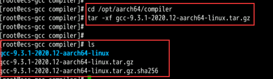 在安装目录下(这里是/opt/aarch64/compiler),使用tar命令对软件包进行解压缩:
