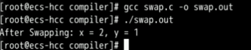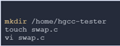 使用一个swap函数验证GCC的程序编译功能,首先我们在个人文件夹(这里以/home/hgcc-tester为例)下创建swap.c文件: