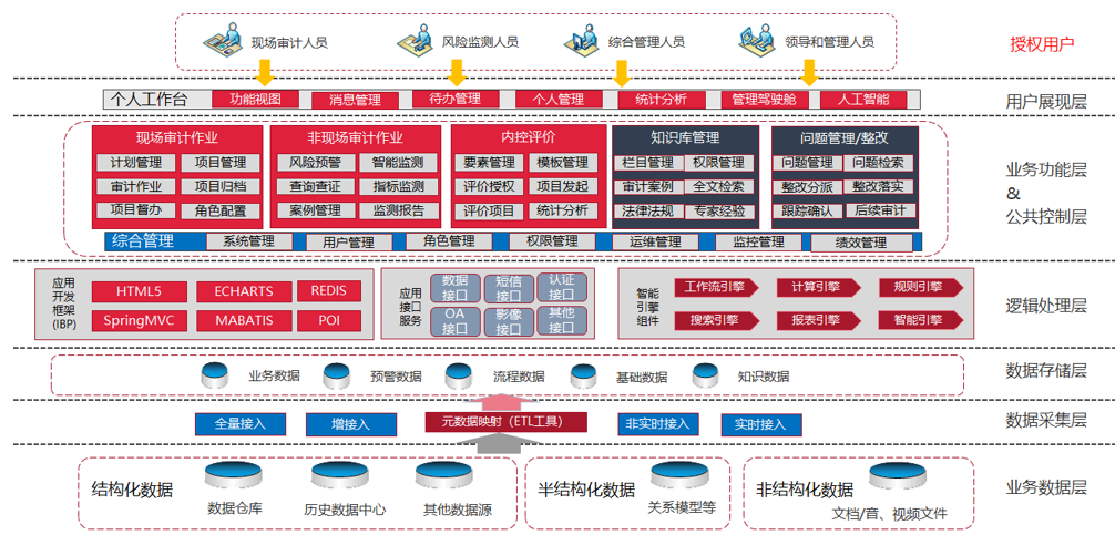 - 系统审计看得准:针对要点、焦点、重点、热点开展全过程、全方位、全要素的风险监测,对各类风险精准制导,精确打击。