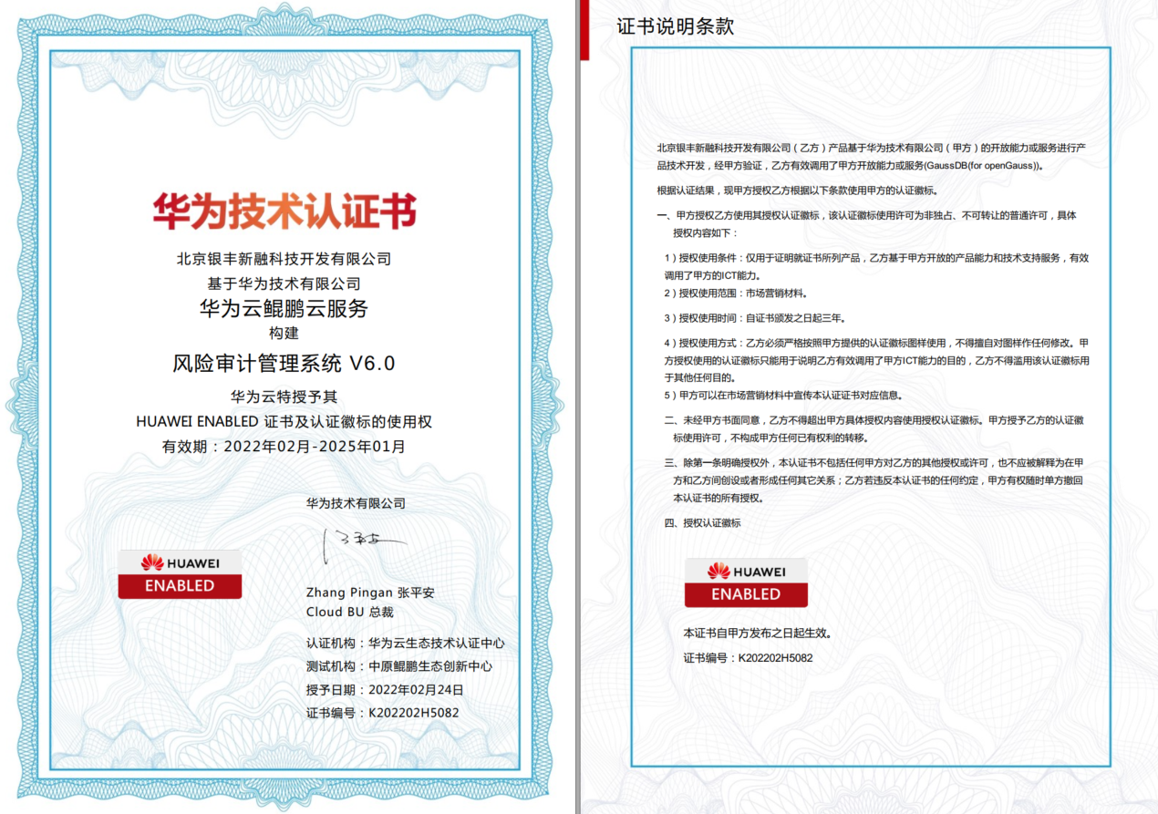 在中原鲲鹏生态创新中心的指导下,银丰新融-风险审计管理系统与鲲鹏硬件进行深度结合,充分发挥鲲鹏芯片精简指令集架构优势,并与GaussDB进行业务改造,满足银行业高并发、高稳定、多容灾的需求。系统面向风险审计行业、结合华为云能力,依托华为云云计算、存储、网络、安全及华为云高阶云服务完成业务功能需求,实现从底层硬件到操作系统、中间件、上层应用等全套系统的无缝兼容,具备全栈国产软硬件兼容认证能力。