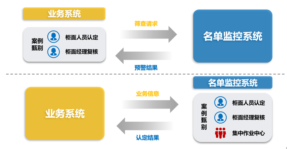 针对多种业务场景进行实时名单监控和回溯性审查工作。全面满足金融机构各种业务模式,支持实时、准实时、批后的相关处理机制,满足对名单信息在线和离线调用,从而及时识别风险。