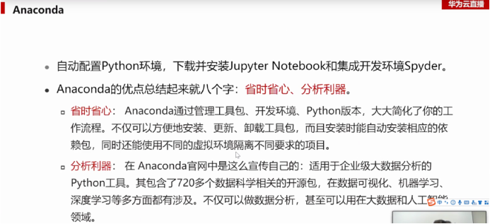 Python的运行环境主要分为两个大的版本,Python2和Python3。两版本的安装步骤是一样的,直播中推荐新手使用一站式安装的Anaconda(是一款集成了许多第三方库的Python解释器,在人工智能和科学计算等领域使用广泛(也分为Python2和Python3))。