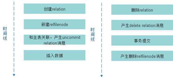 1.针对问题1,存储底层操作单一列存辅助表时,是无法打开关联的主表,寻找主表和打开主表的操作会给存储底层操作带来严重的负担,代价过高,会影响业务性能,打开关联主表的思路是不可行的;因此,GaussDB(DWS)在8.1.3版本中的应对方案是消息队列,通过消息队列将文件级的增删改操作动作记录下来,然后在内核后台维护线程中回放操作,实现了异步处理流程,解耦了辅助表与主表的强依赖关系;但这也会引发另一个问题,当内核后台线程异步回放文件增删改操作时,在关联文件所属schema时,是无法保证对应表是否已经被删除,这一细节将会在后文介绍;