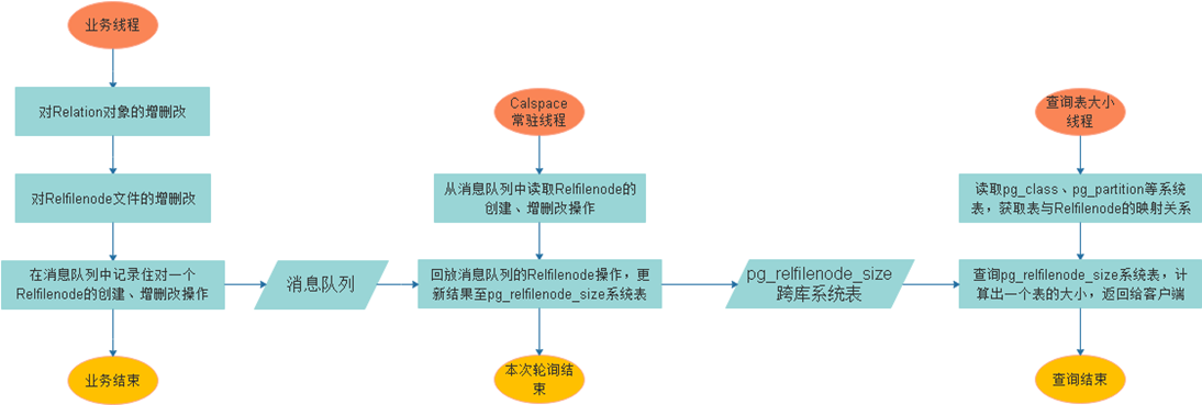 下文将会更加详细的介绍核心思路的设计方案,相关内容有:消息队列、辅助表反查、pg_relfilenode_size系统表。