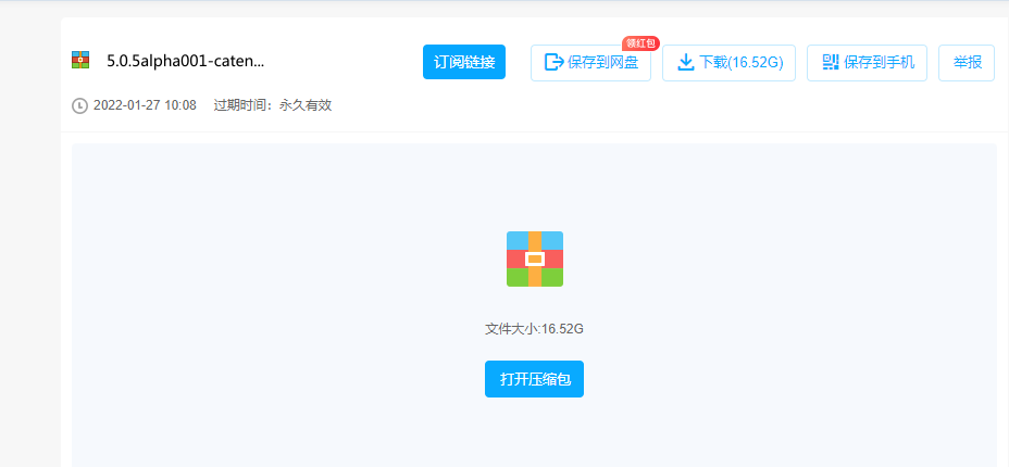 打开5.0.5alpha的链接( https://pan.baidu.com/s/1hm0g3zpmm4f6GyEqGUhptQ ),下载镜像: