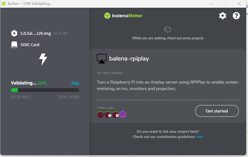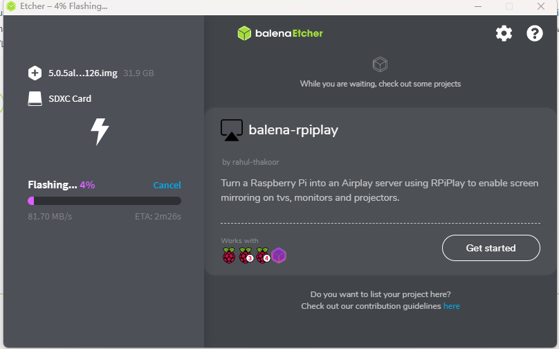 打开镜像制作工具 Etcher:(可以去 https://www.balena.io/etcher/ 下载)