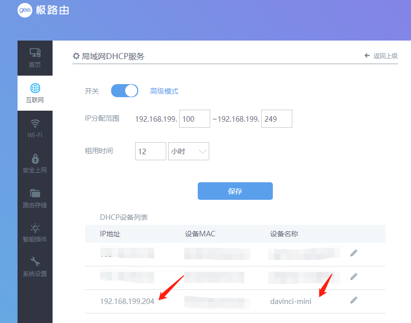 名称为 davinci-mini的设备就是,地址为:192.168.199.204.