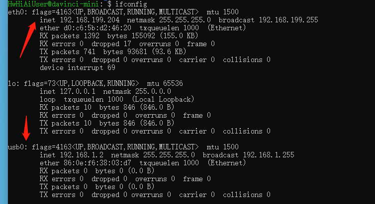 看来设备启动暂时没啥问题。其中usb的地址是 192.168.1.2,但是这个地址确实因为没有用虚拟机通过usb线连接,所以暂时用不着。