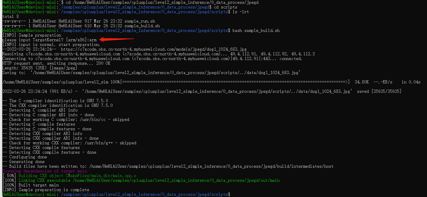 这里需注意,200DK是ARM CPU,所以编译时选择arm而不是在AI1S服务器上选择的x86