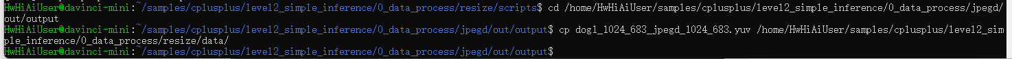 cp dog1_1024_683_jpegd_1024_683.yuv /home/HwHiAiUser/samples/cplusplus/level2_simple_inference/0_data_process/resize/data/