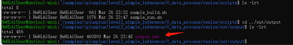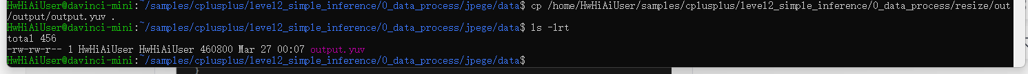 cp /home/HwHiAiUser/samples/cplusplus/level2_simple_inference/0_data_process/resize/out/output/output.yuv .