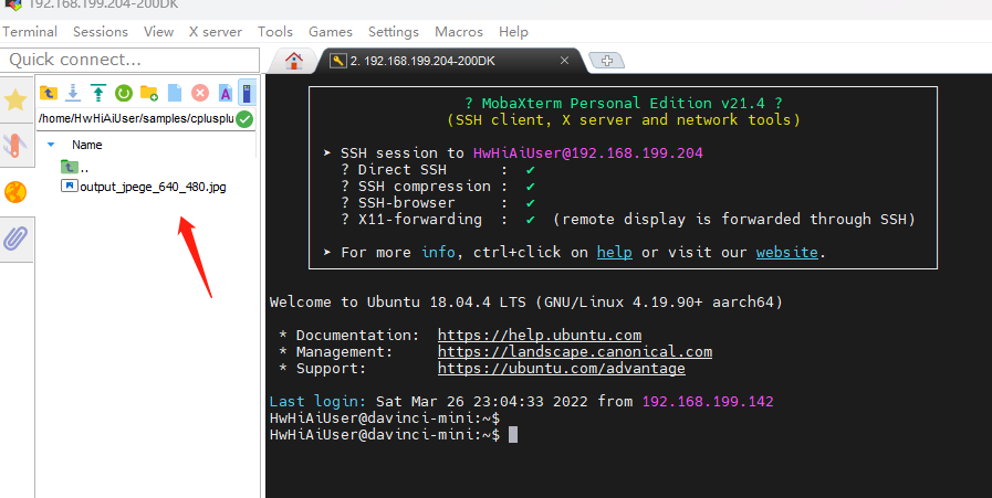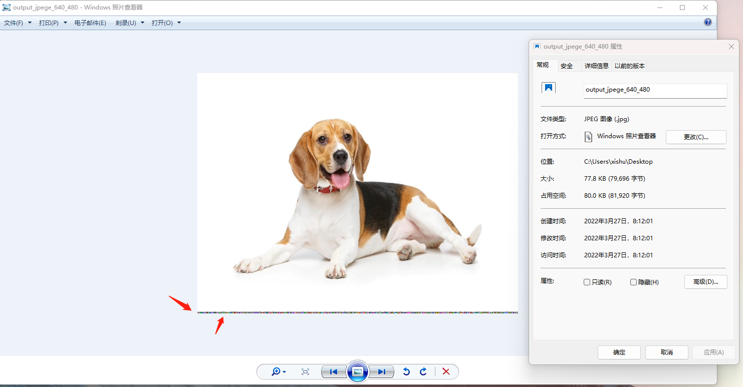 将这个 output_jpege_640_480.jpg 文件拷贝到windows下打开试试:
