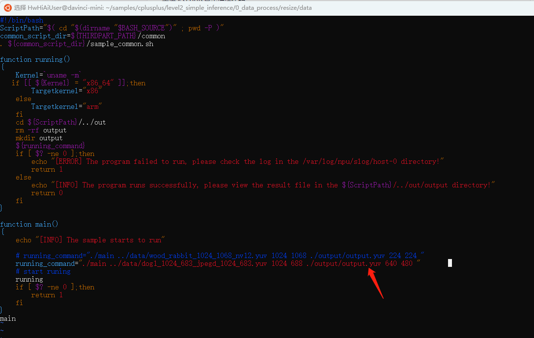 修改sample_run.sh文件,将resize的yuv文件名和resize前后的大小改一下: