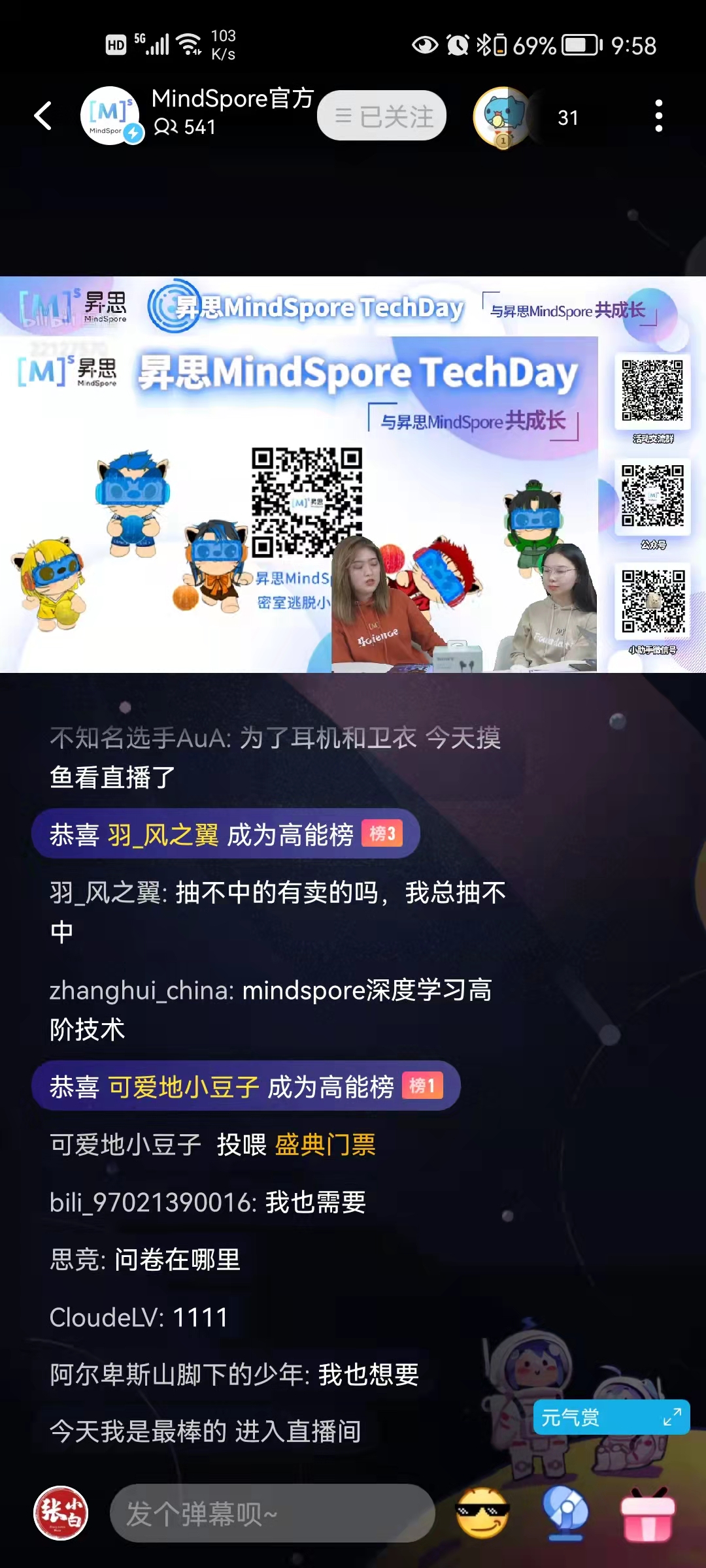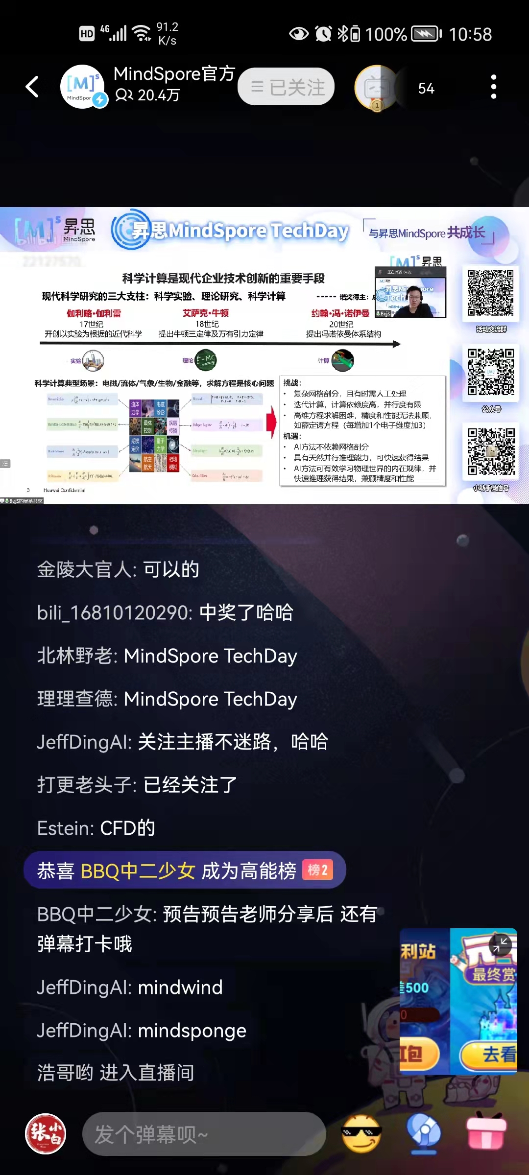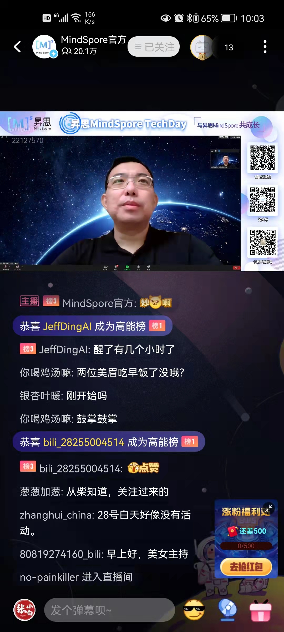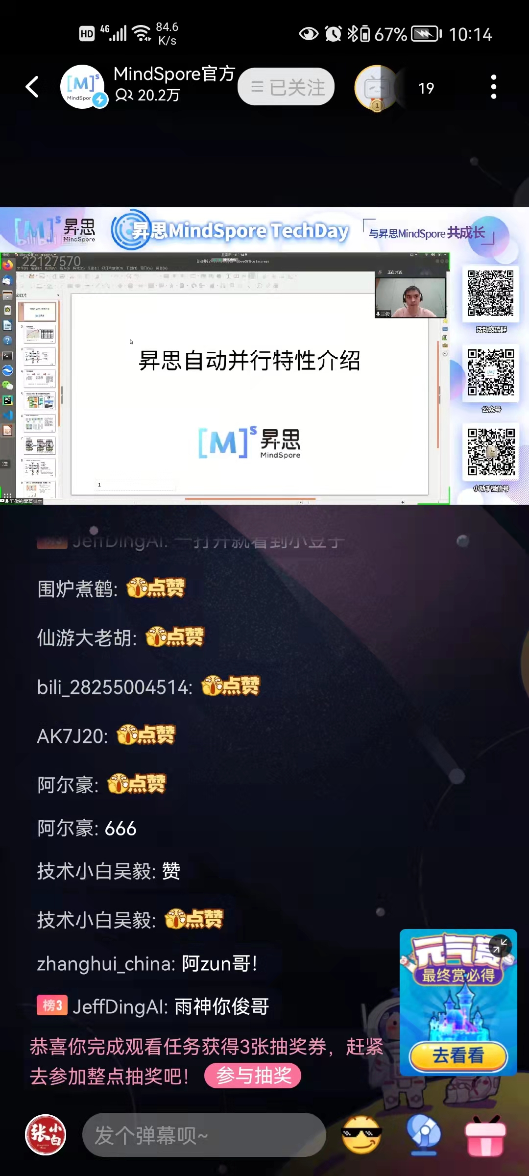 然后,第二个资深布道师 项靖阳 大大介绍了 他跟MindSpore是如何相识、相爱。。。。他还很热心的回答了直播间网友的提问。