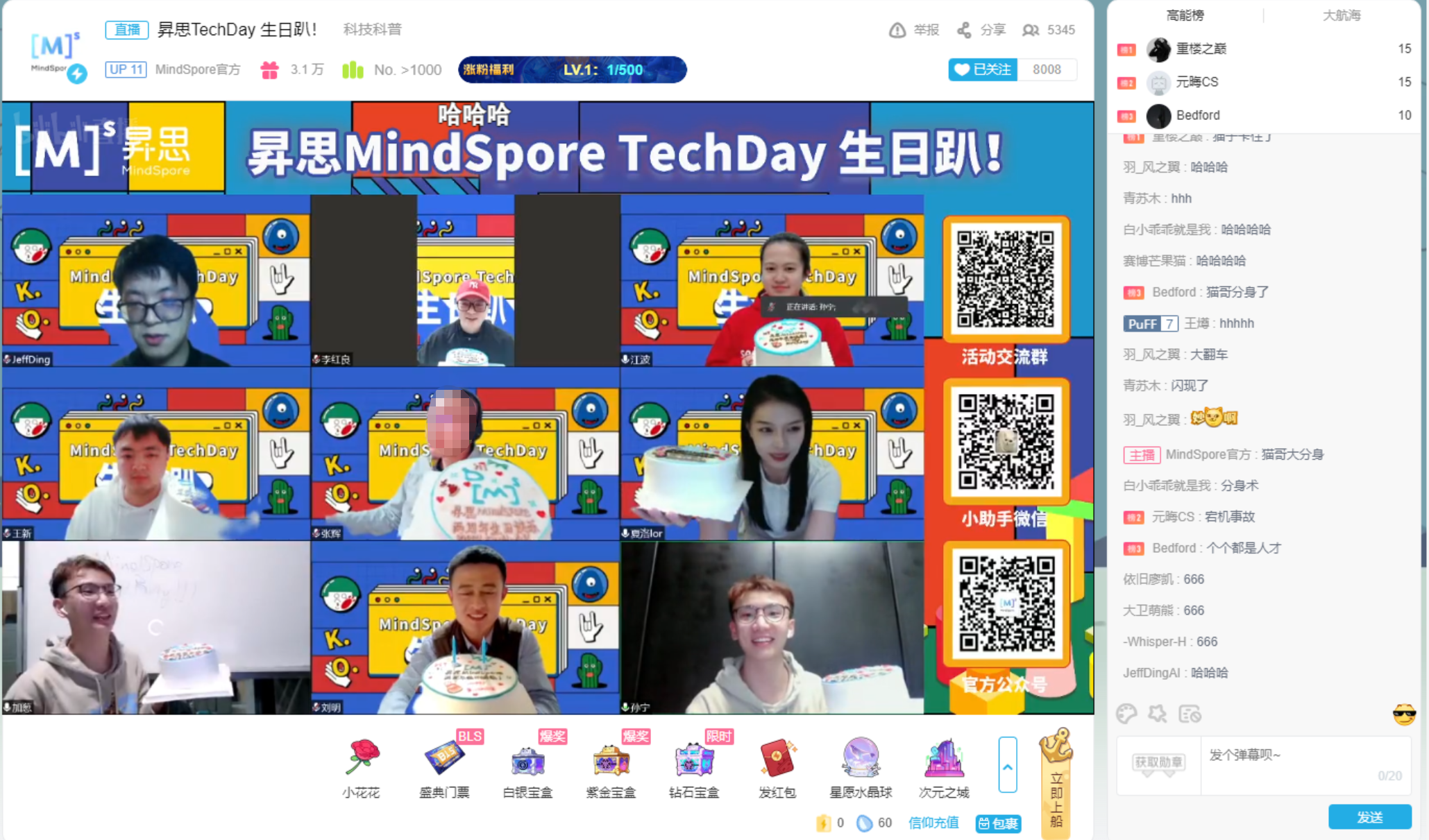 连续3天的MindSpore周年庆活动于2022年3月26日~3月28日在网上举行。由B站直播,https://live.bilibili.com/22127570