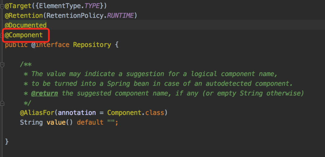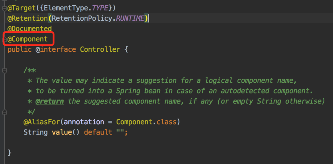 如果你有看过这些注解的源码的话,就会惊奇得发现:其实后三种注解也是@Component。