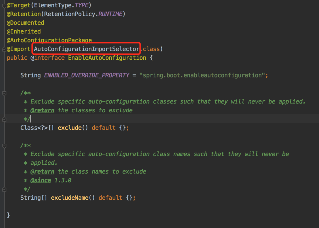 @EnableAutoConfiguration注解中导入了AutoConfigurationImportSelector类,并且里面包含系统参数名称:spring.boot.enableautoconfiguration。