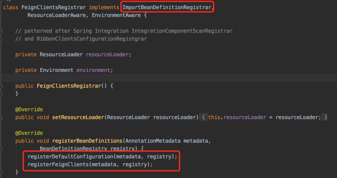 我们所熟悉的fegin功能,就是使用ImportBeanDefinitionRegistrar接口实现的: