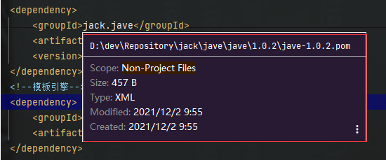 鼠标放置依赖处出现如下界面即为成功