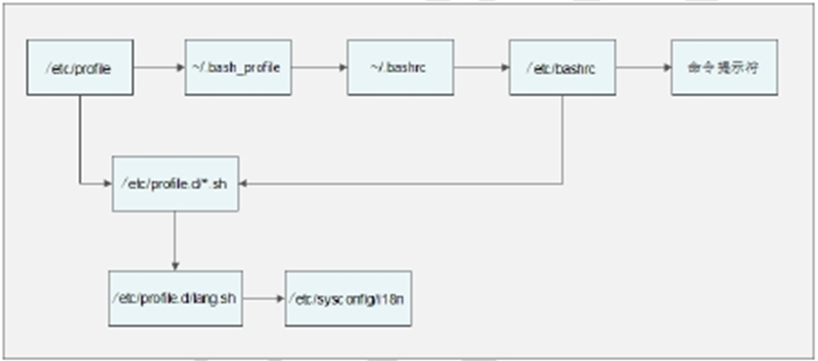 ² 由/etc/profile 文件调用/etc/profile.d/*.sh 文件这个目录中所有以.sh 结尾的文件都会被/etc/profile 文件调用,这里最常用的就是 lang.sh 文件,而这个文件又会调用/etc/sysconfig/i18n 文件。/etc/sysconfig/i18n 这个文件眼熟吗?就是我们前面讲过的默认语系配置文件啊。