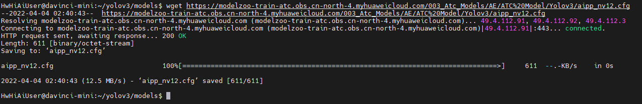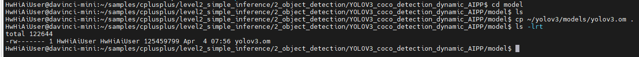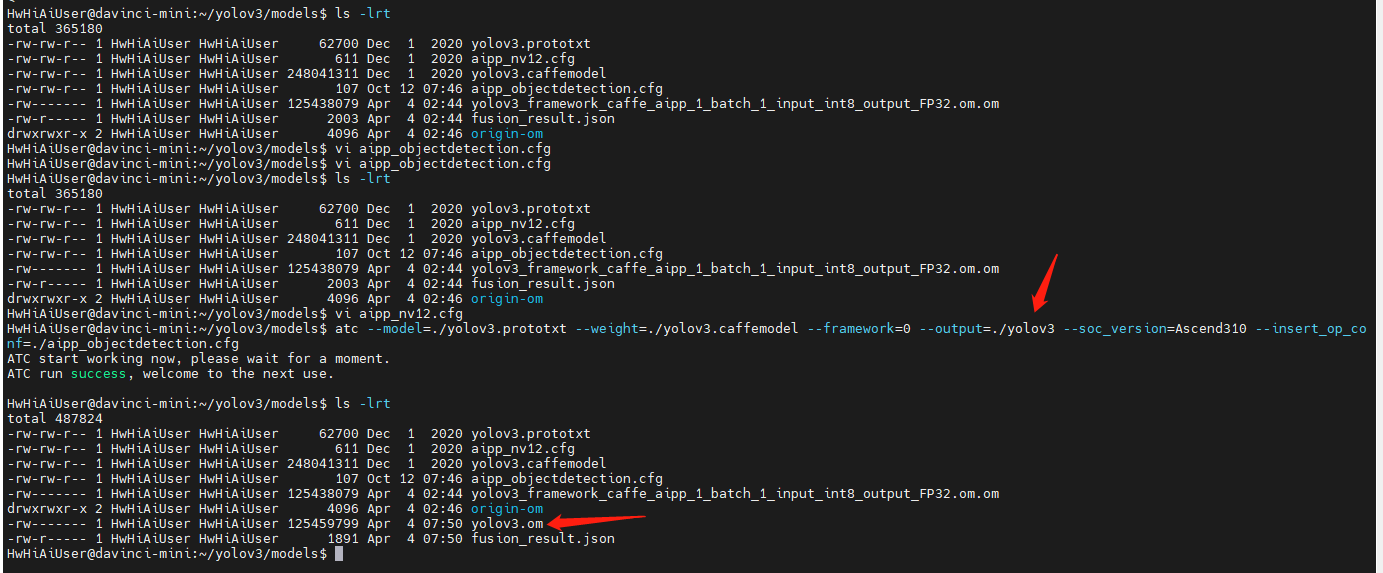既然随机选中了动态AIPP的YoLoV3的代码,那么就只好再atc做个模型转换,生成新的om文件: