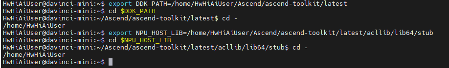 export DDK_PATH=/home/HwHiAiUser/Ascend/ascend-toolkit/latest