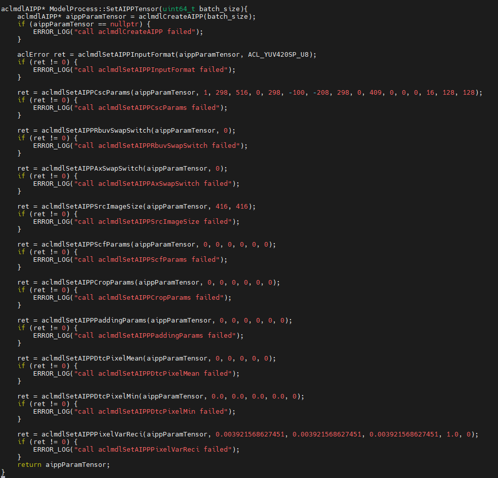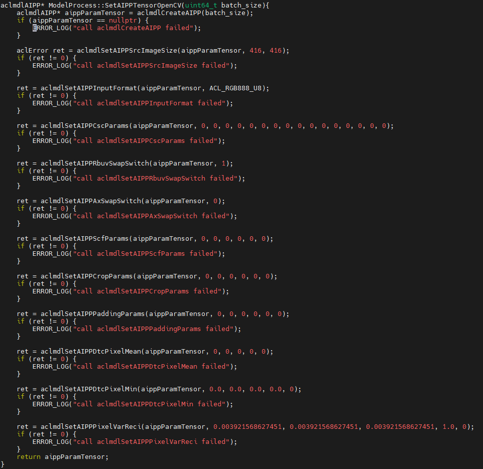所以,这表明,静态AIPP,是将aipp的config文件处理通过atc,编译到了om模型里面,而动态AIPP,是在调用的时候,通过大量的aclmdSetAIPPxxxxx函数来设置这个值。