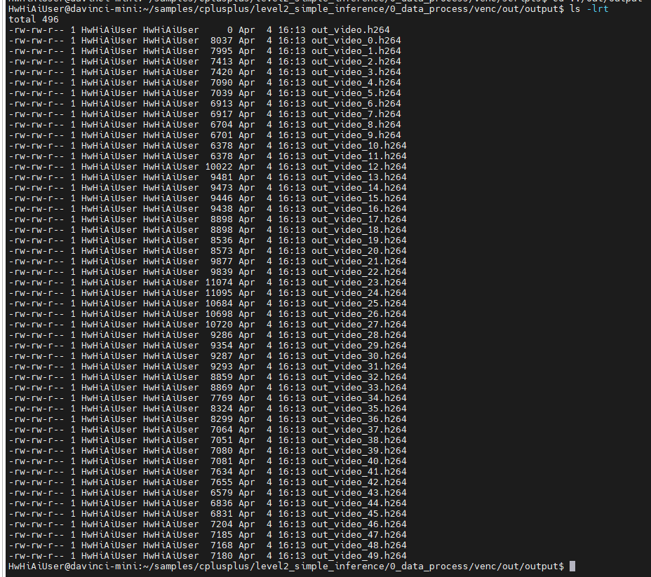 运行bash sample_run.sh获得转换后的多个H264文件:
