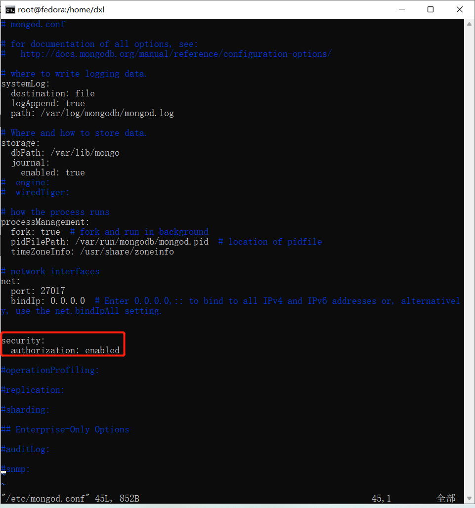 【摘要】 默认的mongodb服务没有设置身份认证,默认所有人都可以连接到数据库,因此需要开启身份认证实验环境:fedora 35 ARM,mongodb 5.0,mongosh 1.31.启动数据库服务方式一:前端启动数据库服务此命令会在前端启动mongodb服务,所以其他操作需要新建一个shell连接mongod --port 27017 --dbpath /var/lib/mongo/正常输出:...