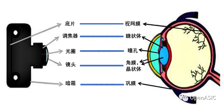 由下图可以看到,经典的相机系统结构是充分参考人类视觉系统来设计的。